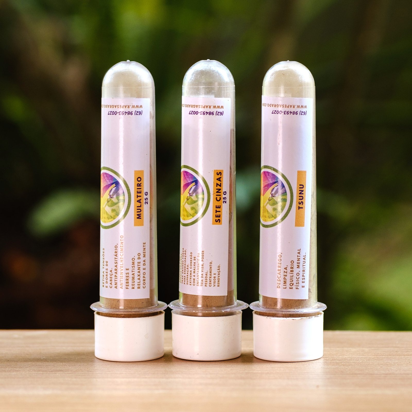 Kit preparado com rapés que auxiliam na superação de vícios. Tsunu, rapé de descarrego, pela manhã, varie entre sete cinzas e cumaru na parte da noite.
